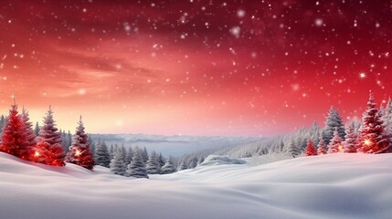 Magical forest with christmas trees and glowing lights christmas card style watercolor abstract artistic winter wonderland nature green woodland holiday background backdrop wallpaper with copy space.