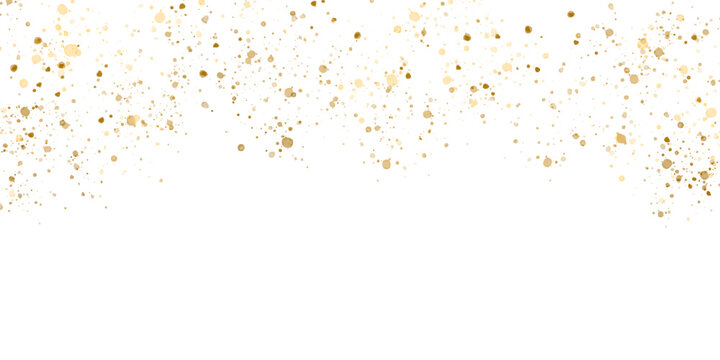 Golden glitter particles, glow border, gold sparkle shimmer isolated on transparent background