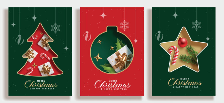 Merry Christmas and Happy New Year Set of greeting cards, posters, holiday covers, backgrounds. Design templates with typography, season wishes in modern minimalist style for web, social media, print