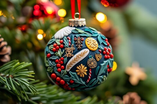 Creative typography christmas tree design with festive decorations and symbols for seasonal celebration