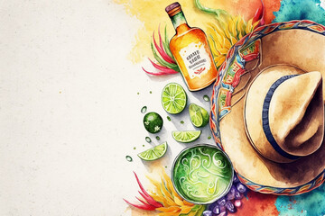 Cinco de Mayo festive holiday watercolour background, fiesta banner