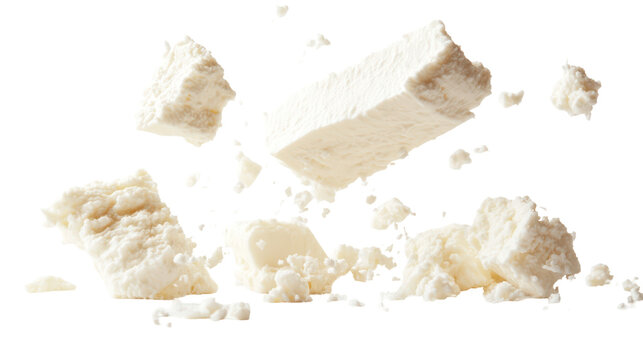 Fresh feta cheese cubes isolated on transparent background, traditional Greek dairy product made from sheep s milk for salads and cooking