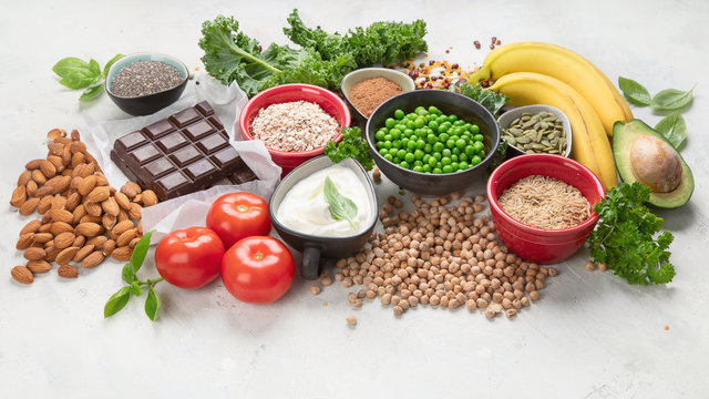Nutritious eating containing magnesium. Healthy nutrition as source vitamins, minerals and fiber