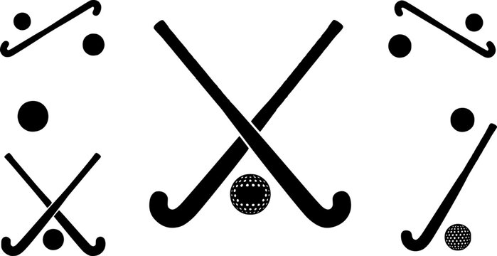 Field hockey stick silhouettes, Field hockey sticks and ball silhouettes, Crossed field hockey sticks vector, Field hockey silhouettes, Field hockey vector illustration.