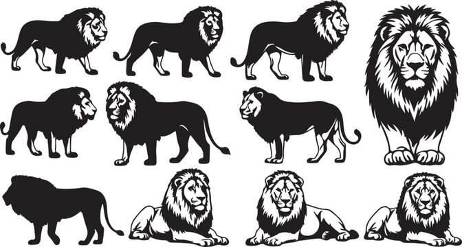 Black silhouette of a roaring lion head with sharp teeth and mane.