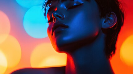 Scene: Silhouette singer against a backdrop of sparkling red lights.