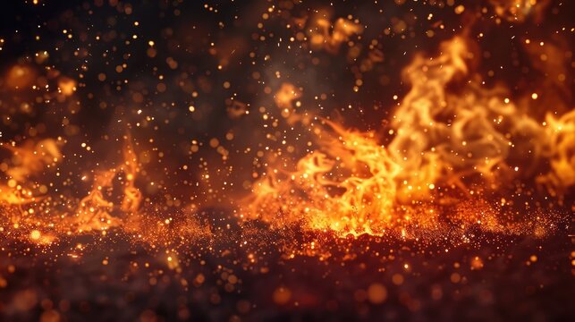 Glowing fiery goat head surrounded by intense flame bursts against a shadowy backdrop generative ai