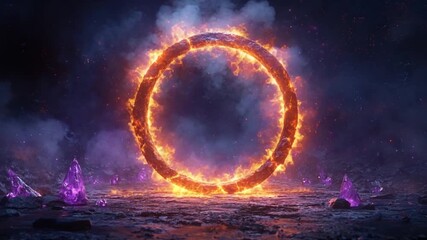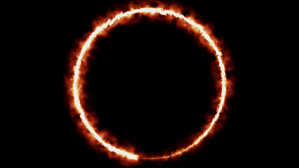 Abstract fiery ring illustration with flames, heat, and dynamic energy. Visual effect of burning motion, glowing embers, and vibrant colors. Represents power, destruction, or elemental force.