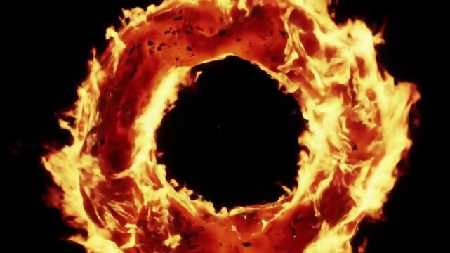 An intense ring of fire swirling against a black background creating a captivating visual effect