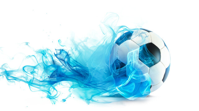 A vibrant Soccer Ball with Blue Flames isolated on a transparent background