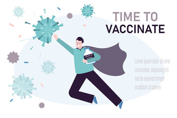 Be healthy - boost your immunity. Man blocking viruses and bacteria with shields, illustration