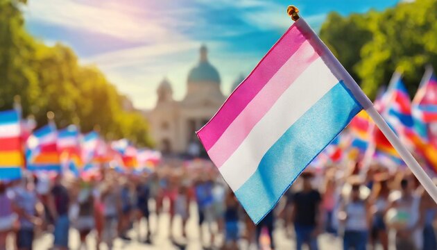 transgender flag on the background of the pride parade, lgbt pride month, fight against transphobia, tolerance