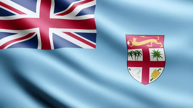 4K  animation of the Fijian flag waving. The realistic silk fabric and coat of arms create a patriotic and proud feeling. National symbol of Fiji.