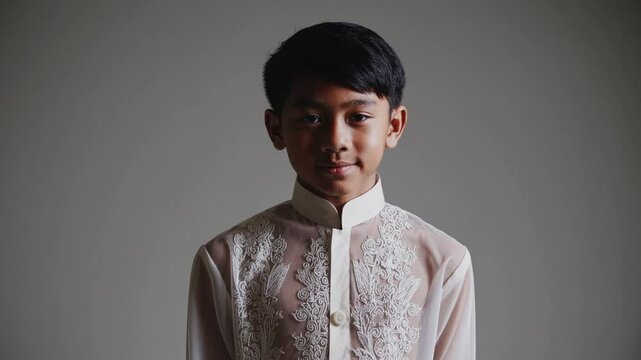 Portrait of a young Filipino boy wearing a traditional Barong Tagalog, showcasing cultural heritage