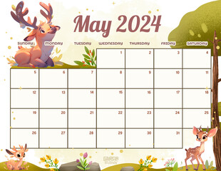 EDITABLE May 2024 Calendar, Fillable Spring Planner, Monthly Schedule for Kids, School, Home & Office Printable, Instant Download | Deer