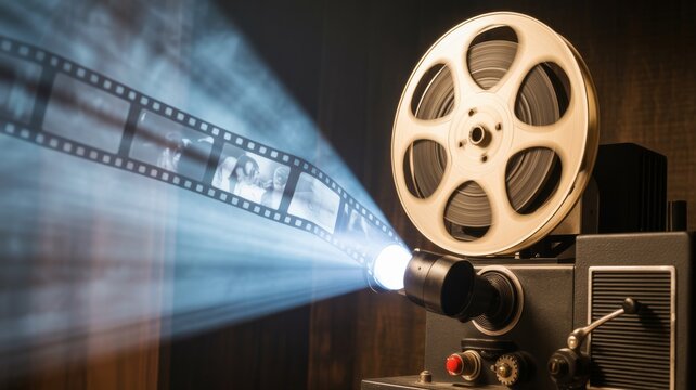 Retro cinema camera silhouette for film event promotion