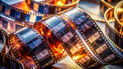 Vibrant cinema film strip with captivating scenes