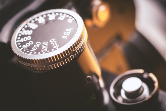 Old photo film rolls, cassette and retro camera.