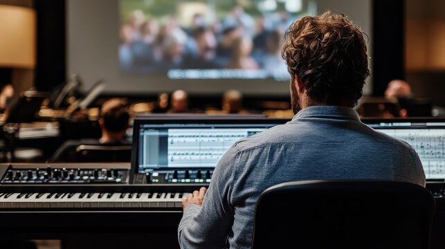 Music production for film with background visuals