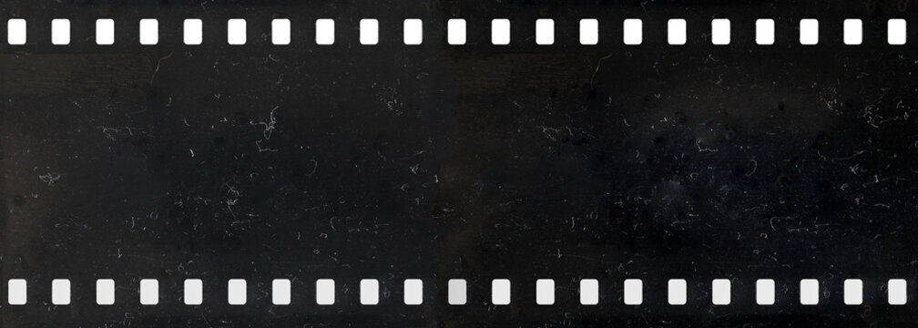 Long strip of old celluloid film with dust and scratches