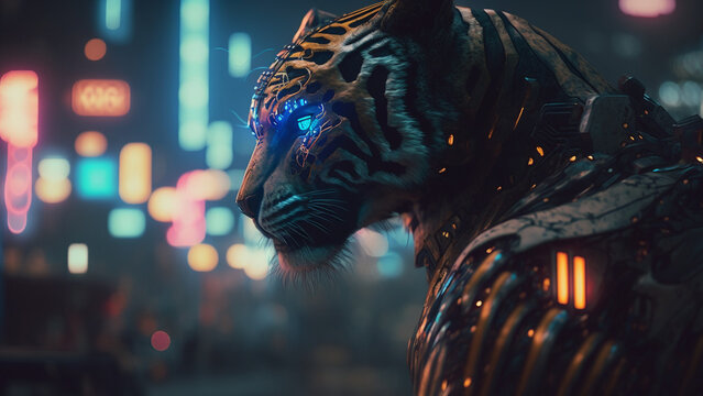 humanoid Tiger cinematic lighting,illustration,created with Generative AI Technology