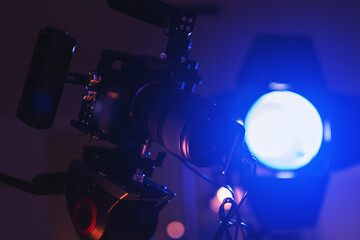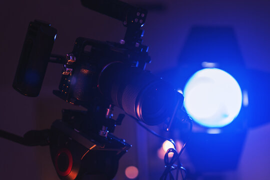 rofessional Camera Rig in Studio with Blue Stage Lighting