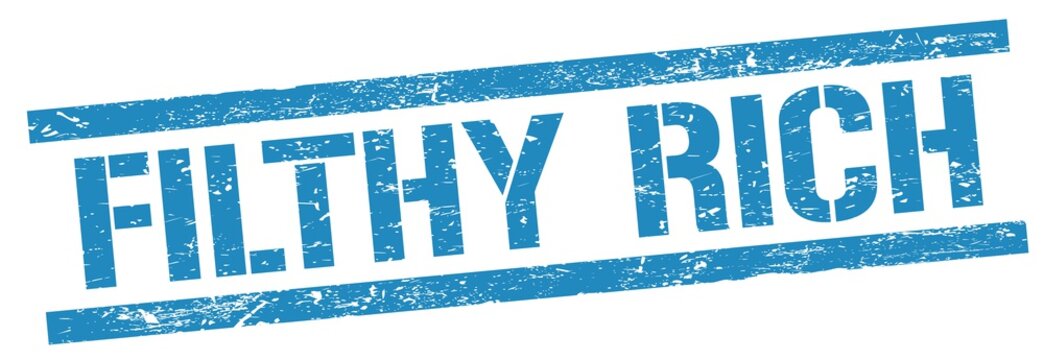 FILTHY RICH text on blue grungy rectangle stamp.