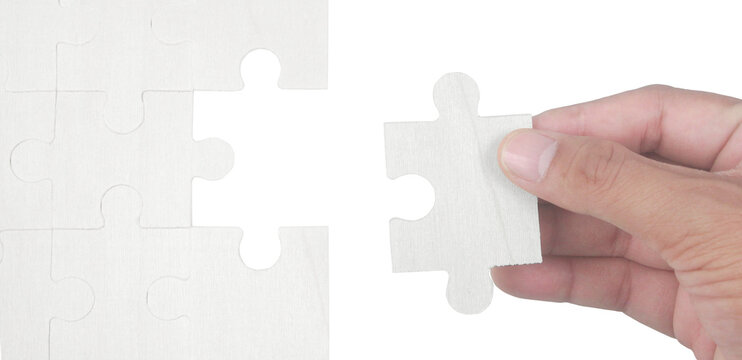 Placing final puzzle piece indoor table photo series minimalist environment close-up view puzzle concept