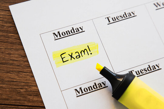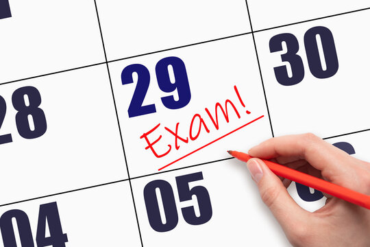 29th day of the month. Hand writing text EXAM and drawing a line on calendar date. Calendar page with a reminder of the exam date. The concept of education. Back to school. Day of the year concept.