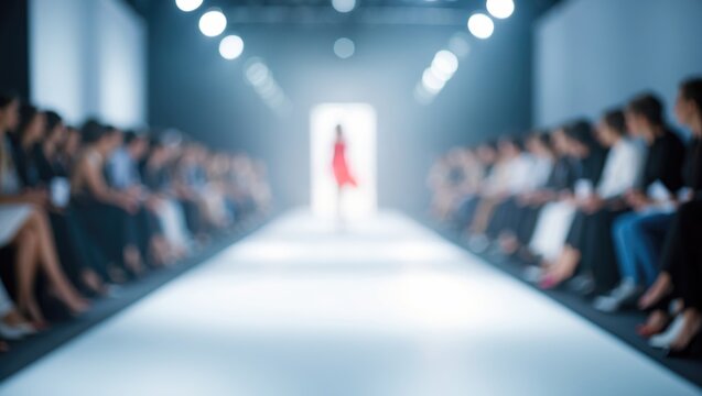 Blurred background of fashion runway catwalk, out-of-focus empty runway during fashion show.
