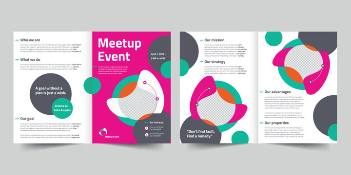 Meetup Event bifold brochure template. A clean, modern, and high-quality design bifold brochure vector design. Editable and customize template brochure