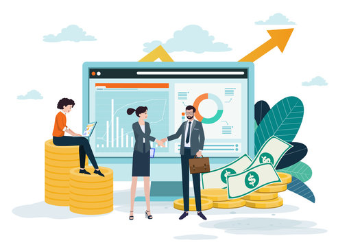 Business concepts for investment. Business cooperation, business growth, return on investment in finance and marketing, analysis and strategy.Vector illustration.