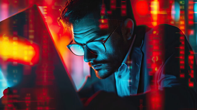 Data analyzing and stock market visualization with digital charts, financial dashboards, and performance metrics. Ideal for investment analysis, trading strategy, and economic forecasting.