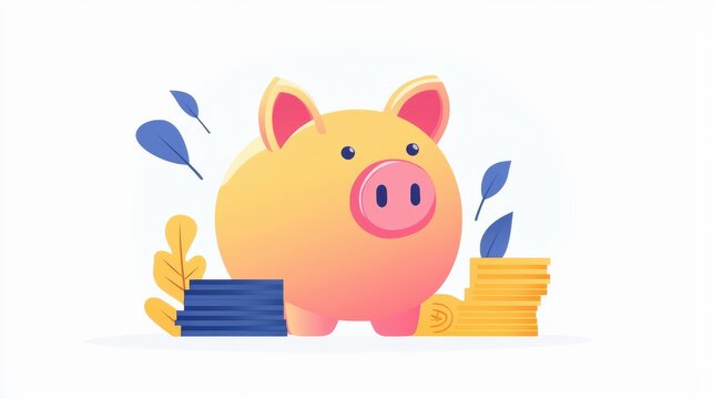Abstract piggy bank with a money stack, minimalistic design, representing saving and financial management in business.