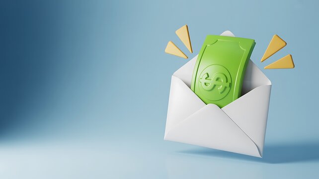 Smiling money inside envelope financial reward payment and income concept illustration