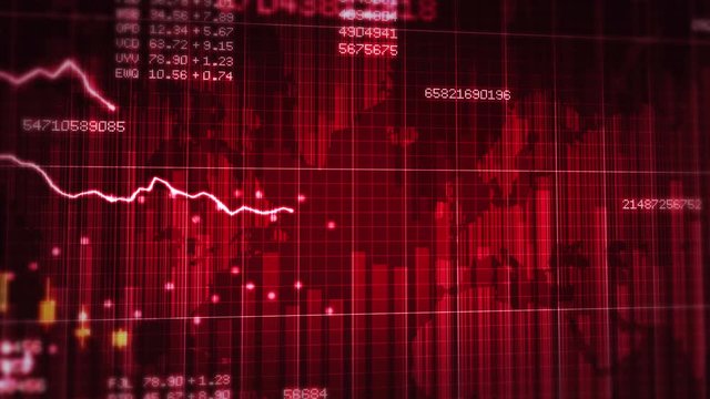 Animated stock market financial graph with red downtrend line. Beautifully designed crash stock chart for trading and investment, seamlessly looped.