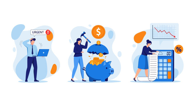 Student debt set. Young graduated character with a financial crisis. Expencive