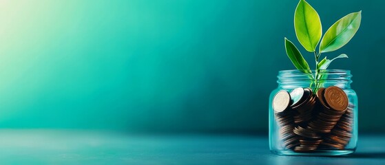 Floating graphic of financial empowerment progress with stacked coins blurred background