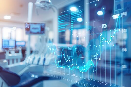watercolor style, Dentist in a clinic with investment graphs in the background, dentist care, financial growth art