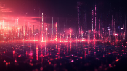 This graphic displays intricate financial market trends with vibrant digital graphs and indicators, highlighting data analysis techniques and statistical insights