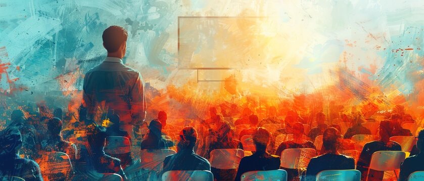 Financial Literacy Workshop with Light Effects An educational setting where light effects highlight key concepts and financial terms.