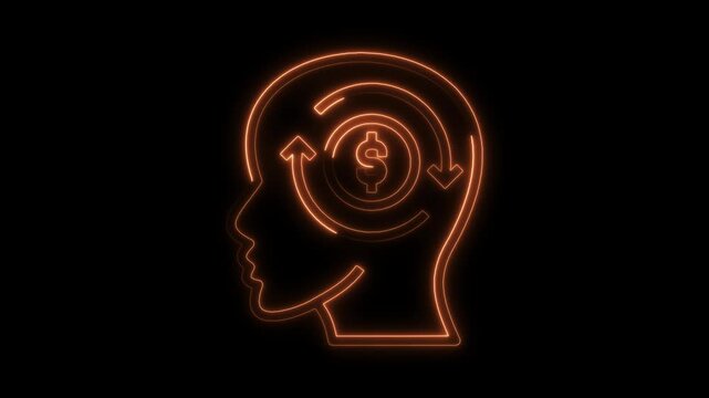 Glowing human head profile with dollar symbol representing financial mindset and economic thought process