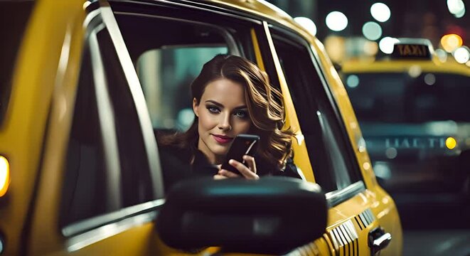 Woman using cell phone in a taxi.