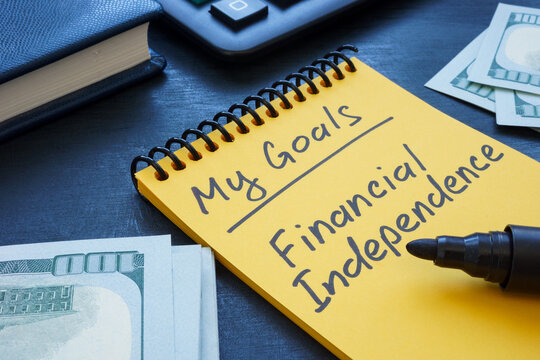 Notebook with handwritten inscription my goals financial independence.