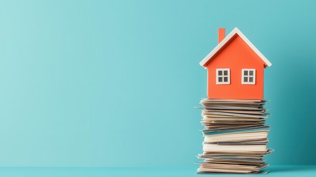 A house balanced precariously on a tower of credit cards, symbolizing the risk of building a household on unstable financial ground, debt foundation, financial risk