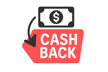 Cashback icon for money refund promotion. Save money concept. Cash back sticker for online shopping app or website. Loyalty program reward bonus tag. Financial service label.