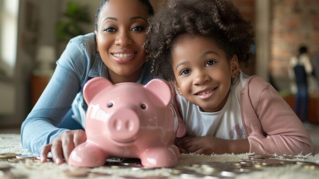 Christening invitation with piggy bank and baby shoes for new beginnings