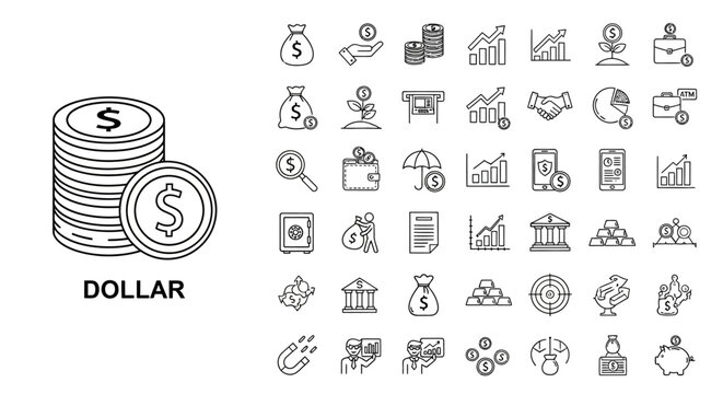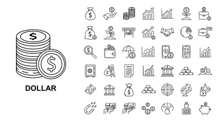 Financial Icons Set A Comprehensive Collection of Business and Economic Symbols for Digital and Print Use