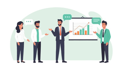 Business Meeting Illustration: Diverse Team Collaborating in Office