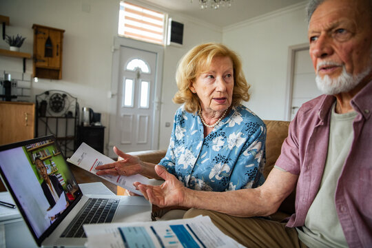 Senior woman reading outdoors for financial planning advertisement
